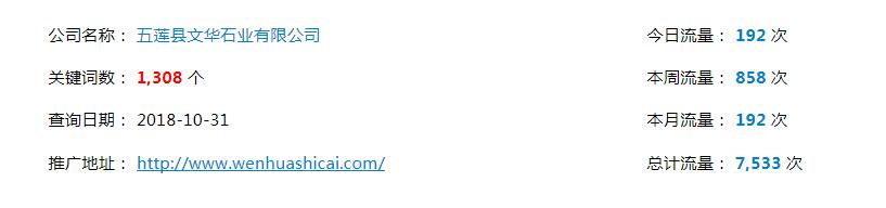 簽約五蓮縣文華石業(yè)有限公司網(wǎng)絡推廣項目。目前網(wǎng)絡推廣,百度首頁關鍵詞已達1360多個。項目穩(wěn)定進行中。